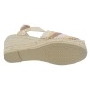 Das Modell Terra-AB von Toni Pons besticht durch einen 6 cm hohen Jute-Keilabsatz und eine 2 cm dicke Sohle. Dadurch wirkt der Absatz beim Gehen wie 4 cm hoch. Das Obermaterial besteht aus gehäkelter Baumwolle in drei Farben: Ecru, Nude und Braun. Ein breites, nicht einschnürendes beigefarbenes Gummiband, das diagonal angenäht ist, sorgt für Dehnbarkeit in Länge und Breite und garantiert so eine bequeme Passform und optimalen Halt.