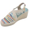 Espadrilles mit Keilabsatz, Stoff mit Wellenstickerei.