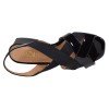 Das Obermaterial besteht aus schwarzem Lackleder und elastischen, gekreuzten Riemen über dem Spann.
