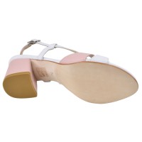 Elegante und bequeme weiße und rosafarbene Ledersandalen für Damen mit stabilem 5-cm-Absatz . Hergestellt in Italien. Erhältlich in den Größen 32 bis 34 .