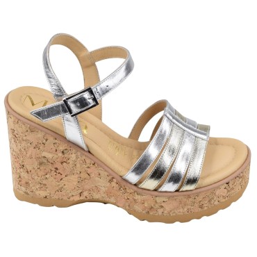Die Keilsohle aus Naturkork bietet eine Höhe von 6,5 cm im Fersenbereich und 2,5 cm im Vorderfußbereich und erzeugt so ein Fußgewölbe von ca. 4 cm . Diese Konstruktion streckt die Silhouette und sorgt gleichzeitig für Stabilität und hohen Tragekomfort.
