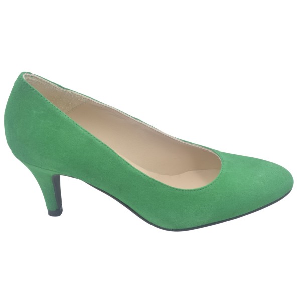 Grasgrüne Wildlederpumps „Niza“ mit 7 cm hohem Absatz und runder Spitze.
