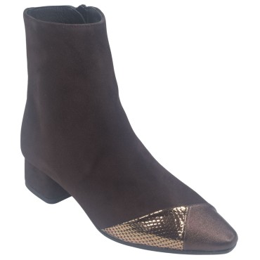 Die Stiefeletten 225449 aus mausgrauem Wildleder der Marke Piesanto haben einen natürlichen Absatz von 4,5 cm. Das Futter ist Leder. Das Obermaterial ist ebenfalls aus Wildleder und hat eine Höhe von 13 cm (gemessen bei Größe 34). Für die Knöchelkontur beträgt sie 26 cm (Messung oben am Stiefel), ideal, wenn Sie breite Waden haben. Darüber hinaus werden Ihre zukünftigen Stiefel mit ihrer Lederdecksohle und Laufsohle aus einem hochwertigen rutschfesten Elastomer die Zeit überdauern. Dieses Paar hat auch eine herausnehmbare Innensohle, um die Weite des Schuhs anzupassen, die Sie entfernen können, wenn Sie breite Füße haben. Es wird notwendig sein, eine dünnere Sohle einzusetzen. Die Breite kann daher zwischen 7,5 cm und 8,5 cm variieren. Schließlich ist das Anziehen dank des Innenreißverschlusses sehr einfach. Warte nicht länger, sie gehen schnell!
