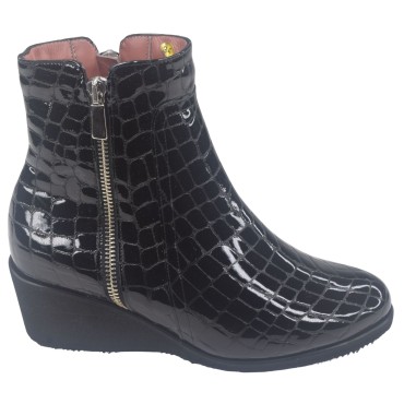 Schwarze Keilstiefelette aus Glattleder, 225907, Piesanto mit einer Absatzhöhe von 3,5 cm.