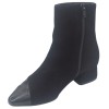 Sein Obermaterial besteht aus schwarzem Wildleder und ein Ledersatz an der Vorderseite des Stiefels besteht aus glänzendem schwarzem Leder und glänzendem schwarzem Viperinleder.