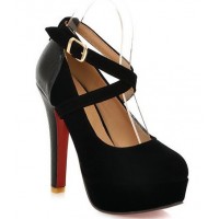 Salón, negro, efecto ante, tirantes, con una altura de tacón de 12 cm y una plataforma delantera de 3 cm.
