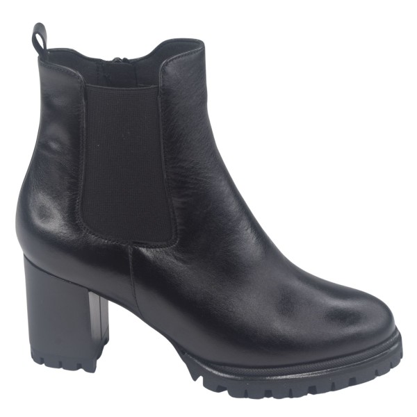 Botines con plataforma, piel lisa negra 195432, Piesanto con altura de tacón 6,5 cm.