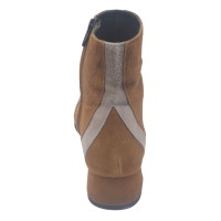 El modelo 35309 de la marca Mella Italia está montado sobre un tacón revestido de ante color coñac, con una altura de 3,5 cm.
