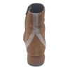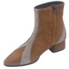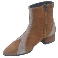 La parte superior está hecha de ante color coñac y ante color topo. La plantilla es de cuero y la suela exterior de elastómero antideslizante de alta calidad.