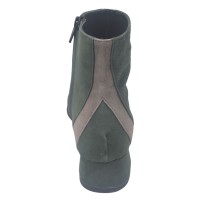 El modelo 35309 de la marca Mella Italia está montado sobre un tacón revestido de ante color caqui, con una altura de 3,5 cm.