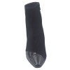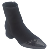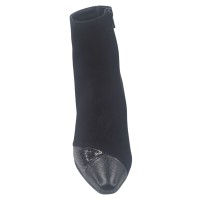 Su parte superior está fabricada en ante negro y un conjunto de pieles en la parte delantera de la bota fabricado en piel negra brillante y piel viperina negra brillante.