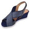 Sandalias de cuña Mella Italie 35742 en ante azul marino, con tacón de 5 cm y tiras elásticas entrecruzadas con brillo. Cómodas y elegantes para mujer en tallas pequeñas 33 y 34.