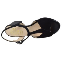 Sandalias de ante negro para mujer con tacón estable de 5 cm , elegantes y cómodas. Fabricadas en Italia. Disponibles en las tallas 32 a 34 .