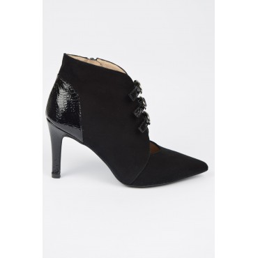 Escarpins, petits talons épais, brides, aspect daim, noires, Lidie
