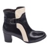 Bottines bimatière cuir lisse noir et cuir craquelé verni beige, Plumers, d'une hauteur talon de 5.5 cm.