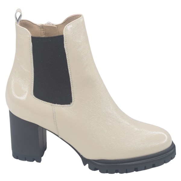 Bottines plateforme, cuir craquelé verni beige 195432, Piesanto d'une hauteur talon de 6.5 cm.