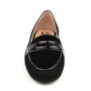 Dessus de coup de pied : velour noir et lanière cuir verni noir