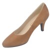 Escarpins daim camel, Niza, d'une hauteur talon de 7 cm à bouts ronds.