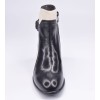 Its upper is made of black smooth leather and beige patent crackle leather with a decorative buckle on the outer side. The insole is lined with high quality calfskin. Its rod is 11.5 cm and its calf contour (taken at the top of the rod on a size 34) is 24 cm. These women's ankle boots in small sizes are easy to put on with a side zipper on the inside of the boot. The width of his footwear is 7.5 cm (standard width). Its tip is round.