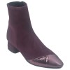 Its upper is made of burgundy suede and a set of leathers at the front of the boot made of shiny burgundy leather and shiny burgundy viperine leather.