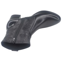 The shaft height is 13 cm (measured at the widest part of the calf). The ankle circumference has a diameter of 26 cm (measured at the widest part of the calf). A zip closure on the outside allows for easy dressing.