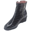 Wedge Ankle Boots, Black Patent Crocodile Leather, 35307, Mella Italy
