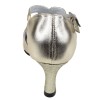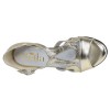This style combines smooth, metallic gold leather with a tone-on-tone glittery center panel that subtly catches the light. The T-shaped strap elegantly shapes the foot and enhances the silhouette, while the adjustable ankle strap with a metal buckle ensures a precise and secure fit.