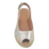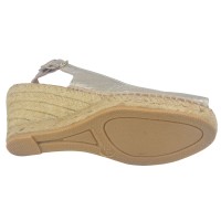 The Croacia model from Toni Pons features a 7cm jute wedge heel with a 1.5cm platform. The heel height will feel like 5.5cm when you walk. The upper is made of smooth, light gold leather. The insole is lined with ultra-comfortable quilted leather, and the outsole is made of non-slip rubber. The shoe has a 7.5cm width. The back strap has an adjustable buckle closure for a perfect fit.