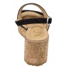 The natural cork wedge sole offers a height of 6.5 cm at the back and 2.5 cm at the front , creating an actual arch of approximately 4 cm . This construction elongates the silhouette while ensuring stability and walking comfort.