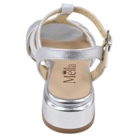 Mella sandals, model 1012, in smooth leather and silver patent leather, with a 3 cm leather-covered heel. 7 cm wide, suitable for narrow feet and low insteps. Leather insole and non-slip outsole.