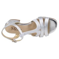 The Mella brand's 1012 model, made in Spain, illuminates the silhouette with its elegant silver leather with subtle reflections.