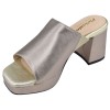 The Piesanto 240051 bronze leather mules captivate with their subtle sheen and comfort. Their gold insole delicately highlights the bronze highlights , while the 6.5 cm heel and 2 cm platform ensure stability and elegance. Available in sizes 33 and 34 .
