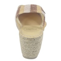 Espadrillas con zeppa color écru, color carne e marrone.