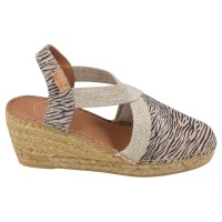 Espadrillas con zeppa, in pelle scamosciata con stampa zebra