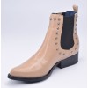 Gli stivali stile Hyppas Chelsea del marchio Pierre Cardin sono montati su un tacco quadrato nero naturale di 3,5 cm. La sua tomaia è realizzata in pelle liscia color carne impreziosita da piccole borchie argentate. La soletta è in pelle con una larghezza della calzatura di 7 cm (per piedi sottili). La suola è realizzata in elastomero di alta qualità.