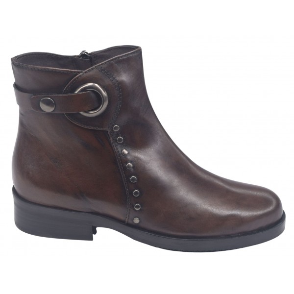 Parte superior / superior: couro liso marrom escuro - Couro granulado de alta qualidade - Cor esfregada