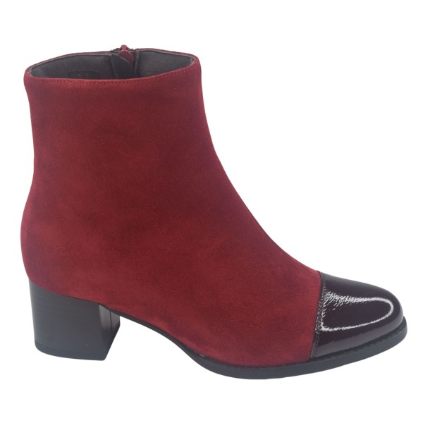 Adicione cor aos seus pés! Atreva-se a usar vermelho! Estes botins de tamanho pequeno em pele camurça vermelha e com a biqueira envernizada bordô cosida a meio do cano, referência 245441 da marca Piesanto, vão combinar facilmente com a maioria dos seus looks. Você pode combinar seus sapatos com lenço, batom ou qualquer outro acessório... voila! Estes botins são forrados em couro. A palmilha é confeccionada em couro e a sola em elastômero antiderrapante de alta qualidade. A altura do salto é de 4,5 cm e a altura do cano é de 13 cm. O contorno do tornozelo é de 25 cm (medido no nível mais largo da panturrilha). Um fecho de correr no interior permite colocá-lo facilmente.
