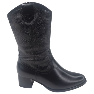 Botas de Couro Croco Preta, Panturrilha Grande, 205450, Piesanto com salto de 4,5 cm de altura.