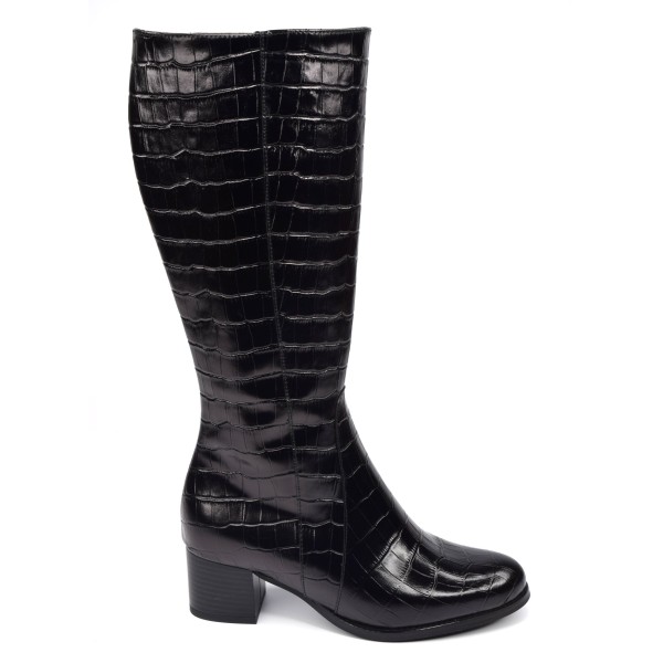 Botas de Couro Croco Preta, Panturrilha Grande, 205450, Piesanto com salto de 4,5 cm de altura.