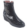 Botas de salto alto plataforma, couro de crocodilo envernizado preto, 35307, Mella Itália
