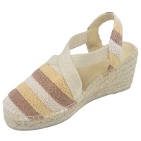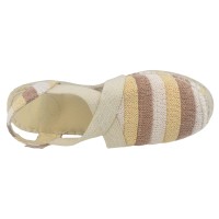 Alpargatas de plataforma em tons de bege, nude e marrom.