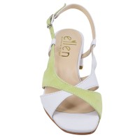 Sandálias de couro branco e verde, modelo 470, Ellen Italy