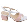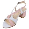 Sandálias femininas de couro branco e rosa com salto estável de 5 cm , elegantes e confortáveis. Fabricadas na Itália. Disponíveis nos tamanhos 32 a 34 .