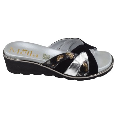 Atemporal e elegante, a sandália anabela feminina Mella Italy 1912 em camurça preta foi especialmente concebida para mulheres que procuram um calçado nos tamanhos 32, 33 ou 34 .