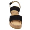 Sandália plataforma Mella Italy 1912 em camurça preta com tira ajustável no tornozelo. Salto de cortiça de 6,5 cm, palmilha acolchoada em couro com espuma viscoelástica e sola antiderrapante. Tamanhos pequenos 32, 33 e 34.